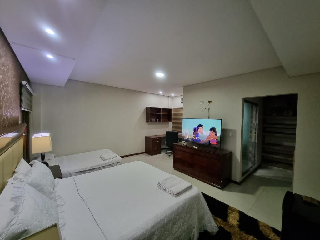Los puntos de interés cercanos incluyen Parque Estadio Tahuichi Aguilera (1.1 km), Parque Lomas de Arena (800 m), Museo Catedrático de Arte Sacro (2.5 km) y Plaza Metropolitana 24 de septiembre (2.7 km), lo que ofrece a los huéspedes acceso cómodo a varios lugares destacados de la zona.
